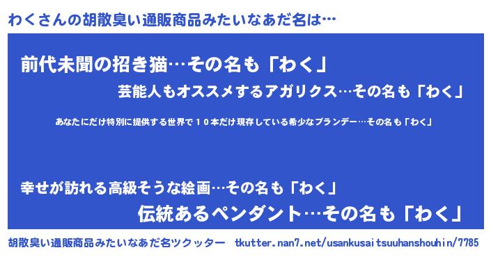 | 意味不明あだ名 | 『住所不定無職わく(81歳)』『永久保存わく』 |