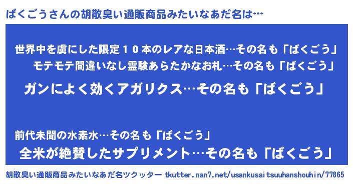 | 意味不明あだ名 | 『自称ばくごう』『エリンギ科ばくごう属』 |