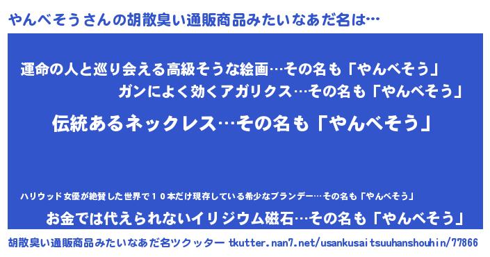 | 意味不明あだ名 | 『とにかく怪しいやんべそう』 |