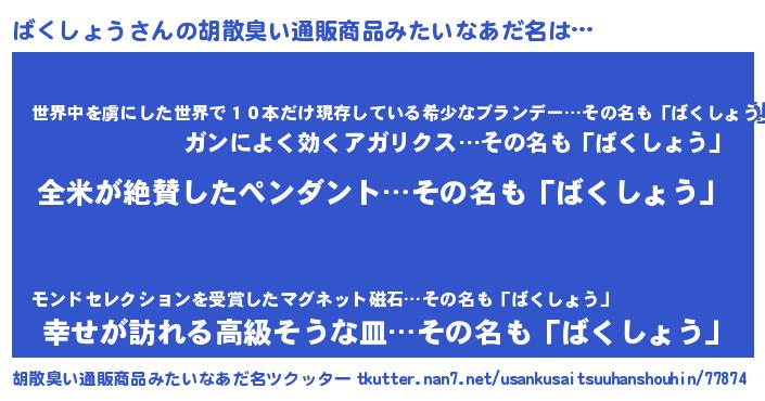 | 意味不明あだ名 | 『とにかく怪しいばくしょう』 |
