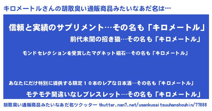| 男性向けラノベタイトル風あだ名 | 『うちのキロメートルが世界を掌握している!』 |