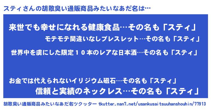 | 意味不明あだ名 | 『たけのこ科スティ属』『永久保存スティ』 |