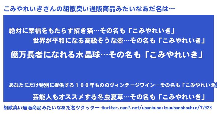 | 意味不明あだ名 | 『ペロリンこみやれいき』 |