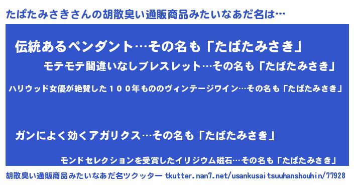 | 意味不明あだ名 | 『住所不定無職たばたみさき(6歳)』 |