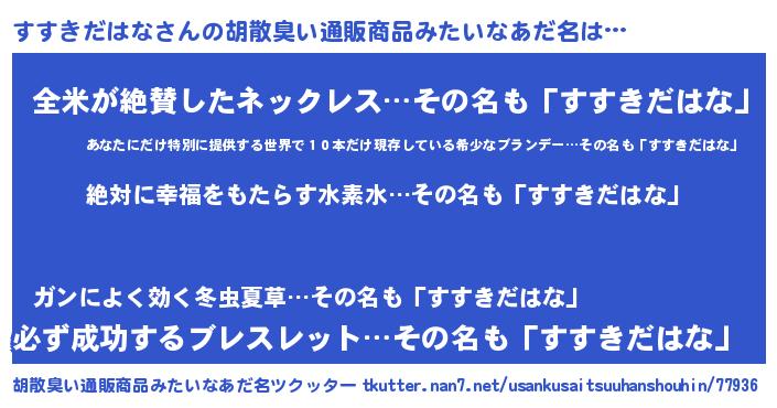 | ヘコむあだ名 | 『すすきだはな(遠い目)』『すすっ子』 |