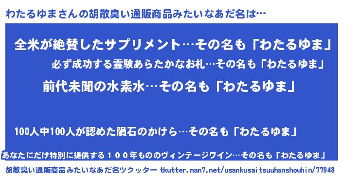 | 意味不明あだ名 | 『ヨモギ科わたるゆま属』 |