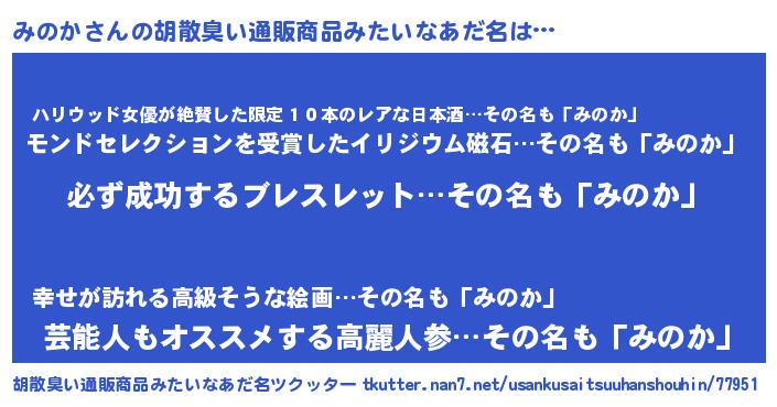 | 意味不明あだ名 | 『ペロリンみのか』『自称みのか』 |