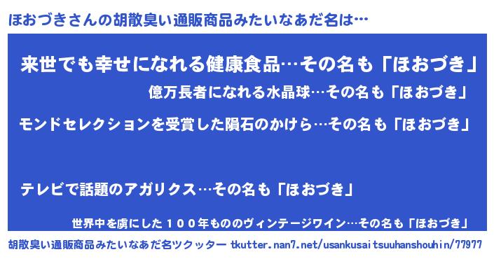 | ヘコむあだ名 | 『ほおづき(遠い目)』『ほおにゅー』 |