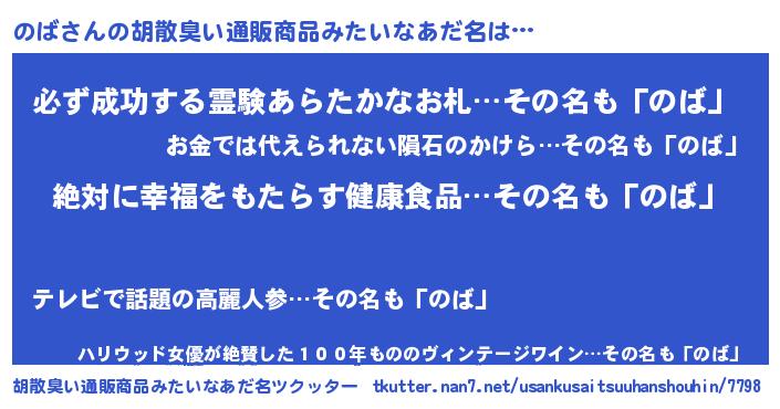 | ヘコむあだ名 | 『のば(苦笑)』『のばにゅー』『牛乳』 |