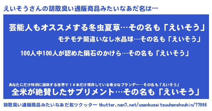 えいそうさんの胡散臭い通販商品みたいなあだ名をツクッター!