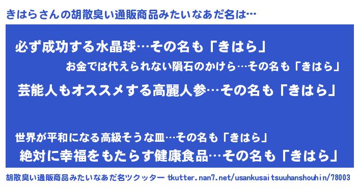| 意味不明あだ名 | 『自称きはら』『ペロリンきはら』 |