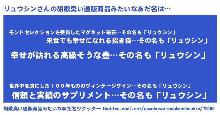 | 男性向けラノベタイトル風あだ名 | 『はたらくリュウシンさま!』 |