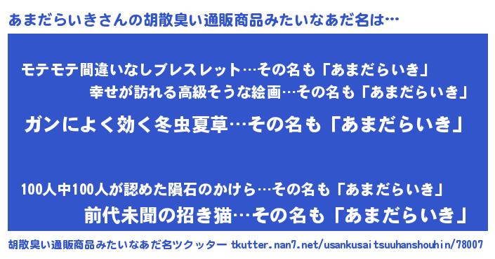| 男性向けラノベタイトル風あだ名 | 『アマダライキスレイヤー』 |