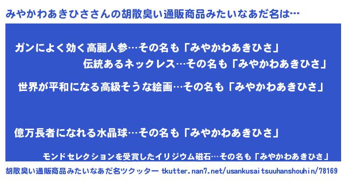 | 意味不明あだ名 | 『みやかわあきひさフォーエバー』 |