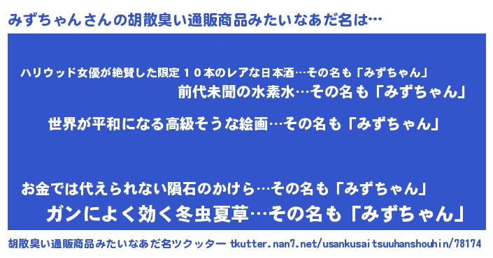 みずちゃんさんの胡散臭い通販商品みたいなあだ名をツクッター!