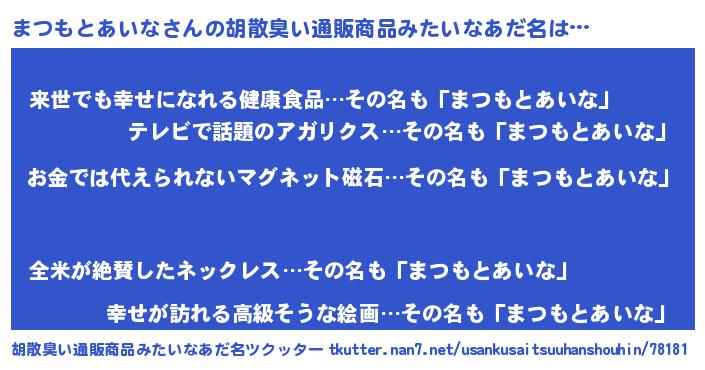 | ヘコむあだ名 | 『まつもとあいな(笑)』『豆乳』 |