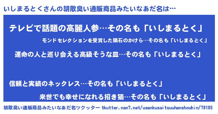 | ヒーロー風カッコイイあだ名 | 『ウルトラいしまるとくマン』 |