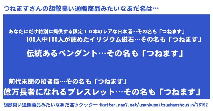 | 男性向けラノベタイトル風あだ名 | 『はたらくつねますさま!』 |