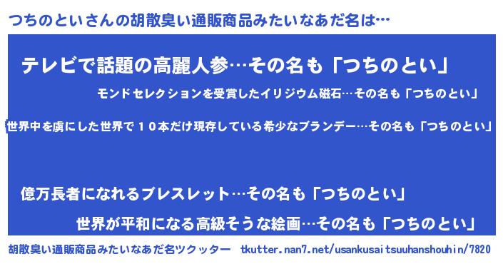 | 意味不明あだ名 | 『住所不定無職つちのとい(77歳)』 |