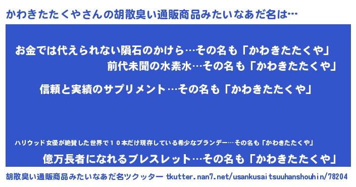| 意味不明あだ名 | 『とにかく怪しいかわきたたくや』 |