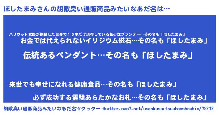 | 意味不明あだ名 | 『とにかく怪しいほしたまみ』 |