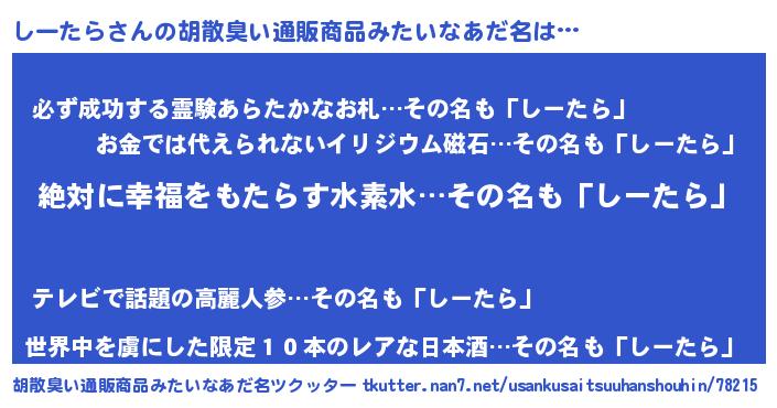 | ヘコむあだ名 | 『しーたら(苦笑)』『しーもー』 |