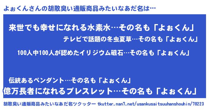 | ヒーロー風カッコイイあだ名 | 『正義の使者よぉくん』『ネオヨォクン』 |