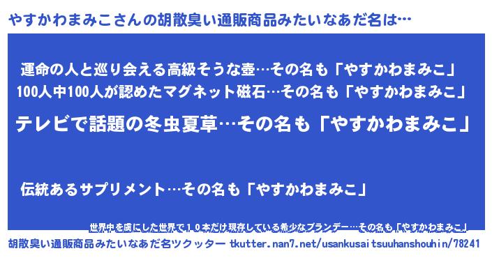 | 意味不明あだ名 | 『自称やすかわまみこ』 |