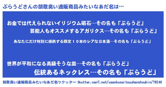 | 男性向けラノベタイトル風あだ名 | 『この素晴らしい世界にぷらうどを!』 |