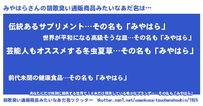 | 意味不明あだ名 | 『自称みやはら』『みやはらフォーエバー』 |
