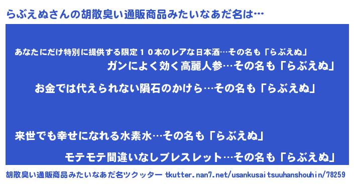 | ポケモン風あだ名 | 『ラックウザ』『ラーブイ』 |