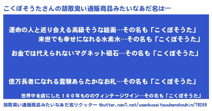 | ヘコむあだ名 | 『なまこ酢』『こくぼそうた(小並感)』 |