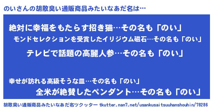 | 意味不明あだ名 | 『自称のい』『永久保存のい』 |