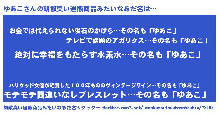 | ヘコむあだ名 | 『ゆあこ(苦笑)』『ゆあっふぃ~』 |