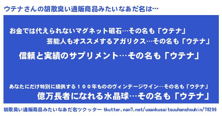 | 男性向けラノベタイトル風あだ名 | 『緋弾のウテナ』『はたらくウテナさま!』 |