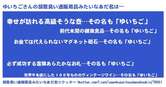 | ヘコむあだ名 | 『豆乳』『ゆいちご(苦笑)』『ゆいお』 |
