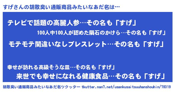 | 肩書あだ名 | 『すげ社長』『すげ閣下』『すげ先生』 |