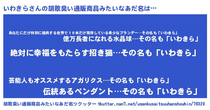 | ヘコむあだ名 | 『いわきら(小並感)』『いわぷりん』 |