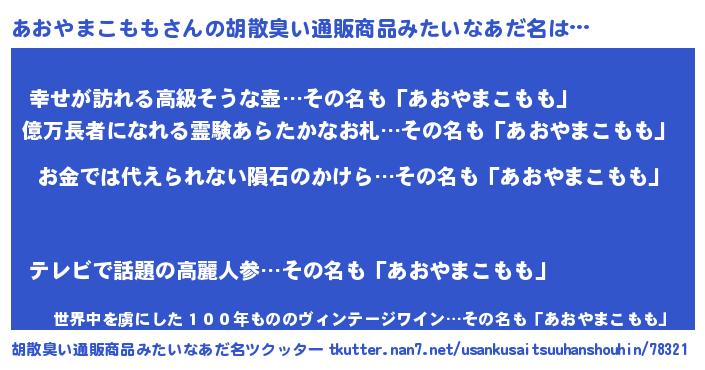 | 意味不明あだ名 | 『眠気覚ましガムあおやまこもも味』 |