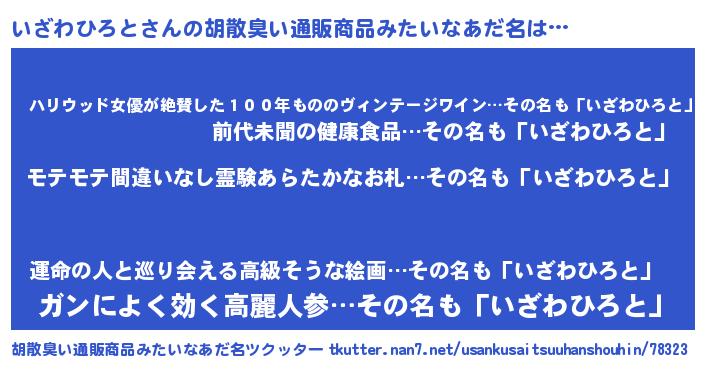 | ヘコむあだ名 | 『いざっふぃ~』『いざわひろと(笑)』 |