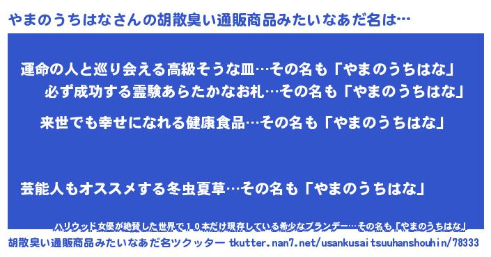 | 男性向けラノベタイトル風あだ名 | 『やまのうちはなという概念が存在しない退屈な世界 』 |