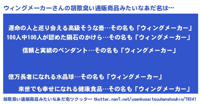| 女子向けラノベタイトル風あだ名 | 『ウィングメーカーは平凡を望む』 |