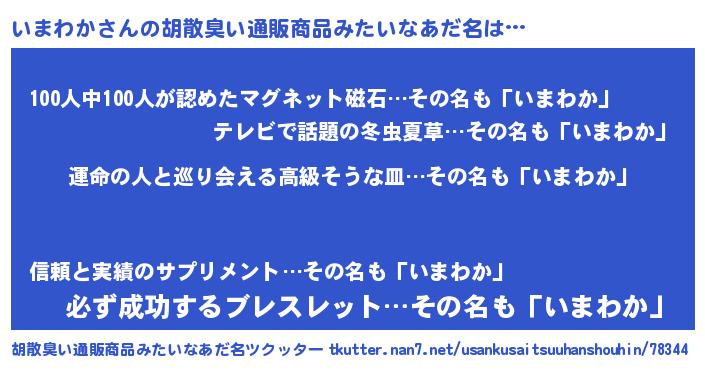 | 意味不明あだ名 | 『いまわかフォーエバー』『自称いまわか』 |