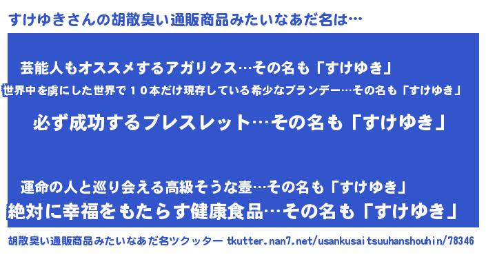 | 男性向けラノベタイトル風あだ名 | 『すけゆきの憂鬱』『スケユキスレイヤー』 |