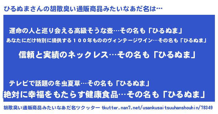 | 意味不明あだ名 | 『とにかく怪しいひるぬま』 |