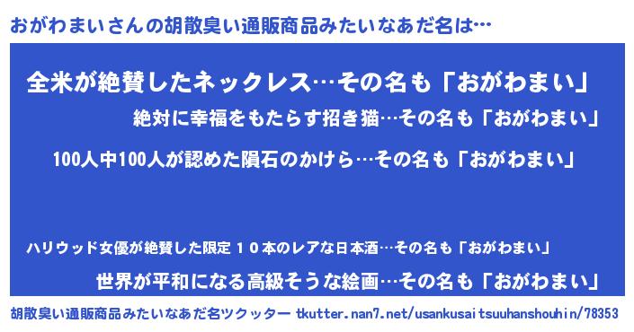 | ヘコむあだ名 | 『おがっぺ』『なまこ酢』『おがもー』 |
