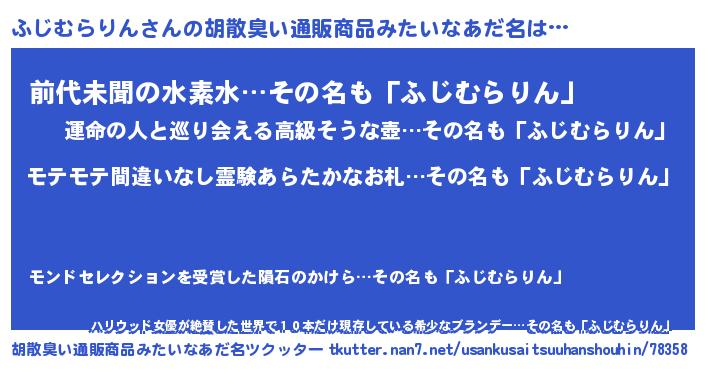 | ヘコむあだ名 | 『ふじもー』『ふじむらりん(遠い目)』 |