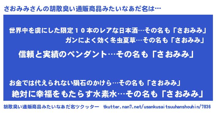 | ヘコむあだ名 | 『さおっちょ』『さおみみ(小並感)』 |