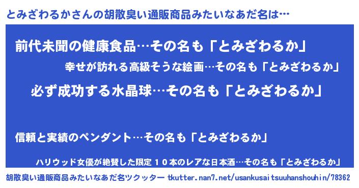 | 男性向けラノベタイトル風あだ名 | 『とみざわるかの憂鬱』 |