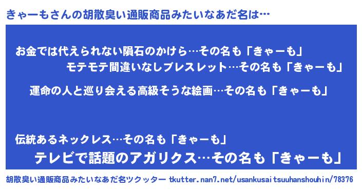 | 意味不明あだ名 | 『きゃーもフォーエバー』『自称きゃーも』 |